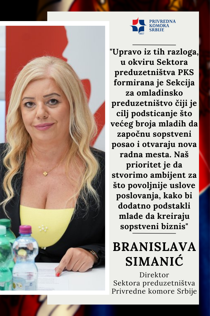 Podseća da je zahvaljujući aktivnostima Vlade Srbije i PKS ostvaren evidentan rast i napredak omladinskog preduzetništva u Srbiji.