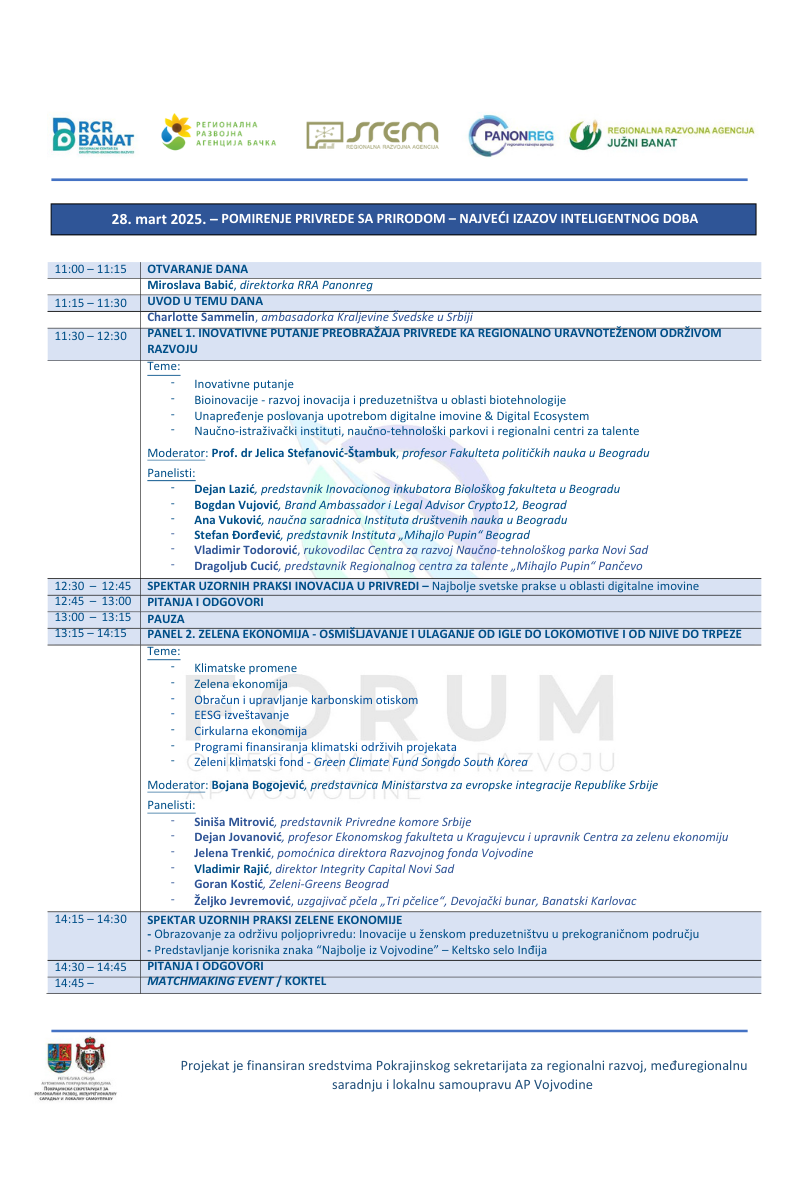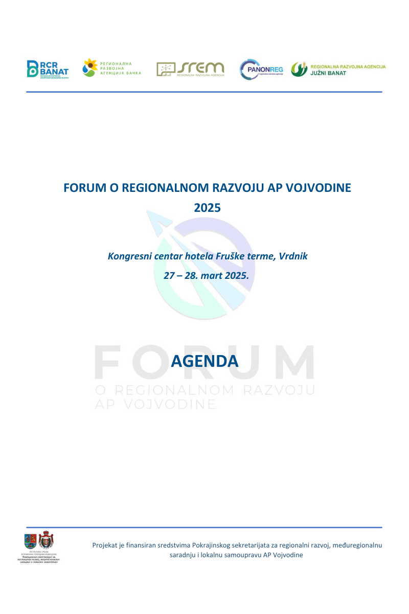 Zadovoljstvo nam je da vas pozovemo na Treći Forum o regionalnom razvoju AP Vojvodine, koji će se održati od 27. do 28. marta 2025. godine u Kongresnom centru hotela Fruške Terme u Vrdniku.