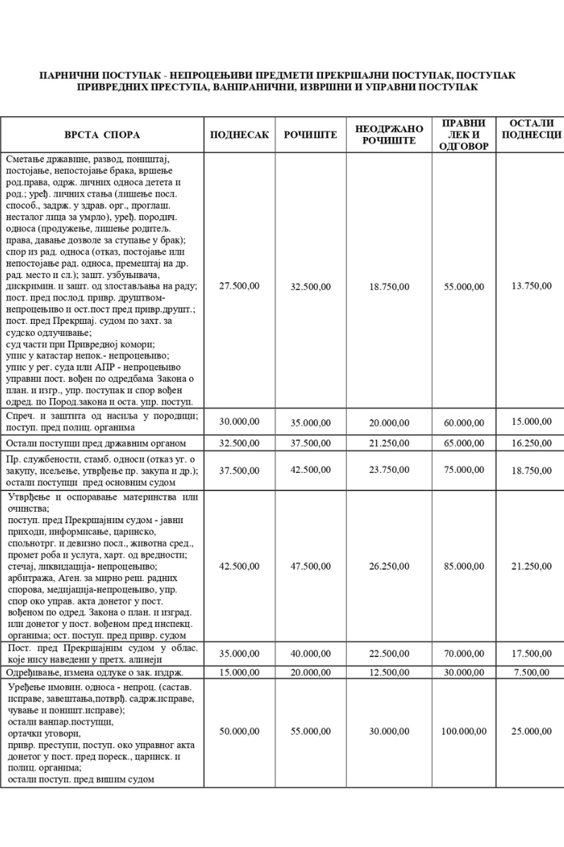 1. Tarifni broj 1 - za zahtev, ako ovim zakonom nije drukčije propisano - 420 dinara